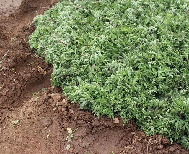 云臺冰菊基地人工施撒有機(jī)肥。