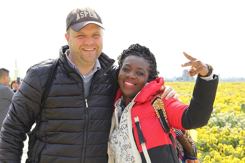 這也在拍,那也在拍,看來這些外國專家對咱們的云臺冰菊很有興趣么~各類膚色的人聚在一起共同賞菊品菊,場面和諧極了,看來不僅藝術(shù)能促進各國間的文化交流,農(nóng)業(yè)照樣有聚集人心的魅力??!